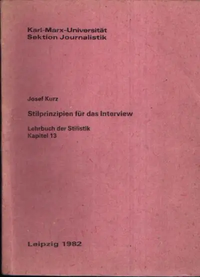 Lehrbuch der Stilistik; Sprache; Sprachwissenschaft; Lehrbuch; Interview; Analysen; Texte; Sprachpsychologische Voraussetzungen; Josef Kurz; Stilprinzipien für das Genre Interview