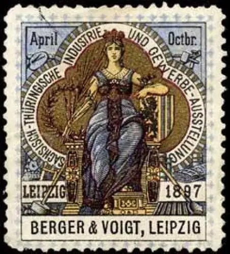Sächsisch-Thüringische Industrie und Gewerbe-Ausstellung, Leipzig, Größe/Zustand: 4x3 , I-II, Original alte Reklamemarke die seinerzeit für die Werbung benutzt wurde