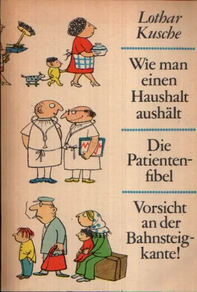 Wie man einen Haushalt aushält; Die Patientenfibel; Vorsicht an der Bahnsteigkante; Kusche, Lothar; Humorvolle Geschichten; Erzählungen; Wie man einen Haushalt aushält; Fluch des Abwaschens; Reinlichkeit ist keine Kleinigkeit; Unpraktische Winke; Prost Mahlzeit; Männer und Kinder; Außerdem; Patientenfibel; Vorsicht an der Bahnsteigkante; Zwischen hier und Schuklibukli; Schlaglichter auf Sibirien; Bleibe im Lande; Schnappschüsse aus England; Zum Schluss