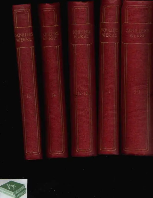 Seiten gebräunt, leichtere Gebrauchsspuren, guter Zustand, Aus dem Inhalt: 6.Teil: Wilhelm Tell; Die Huldigung der Künste; Demetrius; Unterhaltungsschriften. 7.Teil: Übersetzungen. 11.Teil: Kleine historische Schriften. 12.Teil: Philosophische Schriften und Kritiken. 13.Teil: Zu den Werken. 14.Teil: Dramatische Fragmente. 15.Teil: Bühnenarbeiten (Die Räuber, Fiesko). Anmerkungen. Beschreibung vom Antiquariat Ardelt 1a3b Antiquariat Ardelt