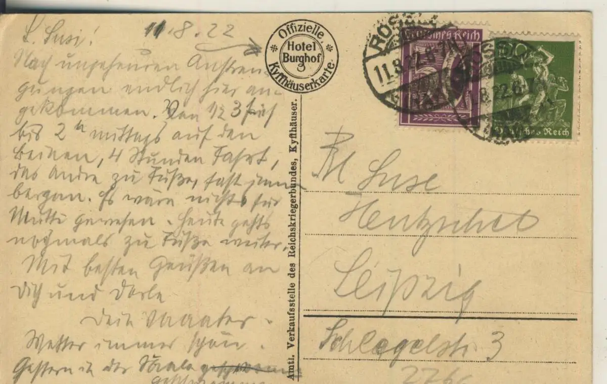 gelaufen mit Marke und Stempel von : 1922