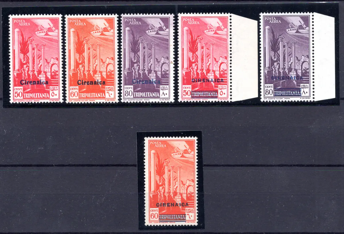 MNH - Vollgummi - - Kyrenaika - Luftpost aufgedruckt Nr. 1/5+ nicht ausgegeben Nr. 40 sechs Werte in sehr guter Qualität und guter Zentrierung - Kat. euro 135 Cod.1017/182