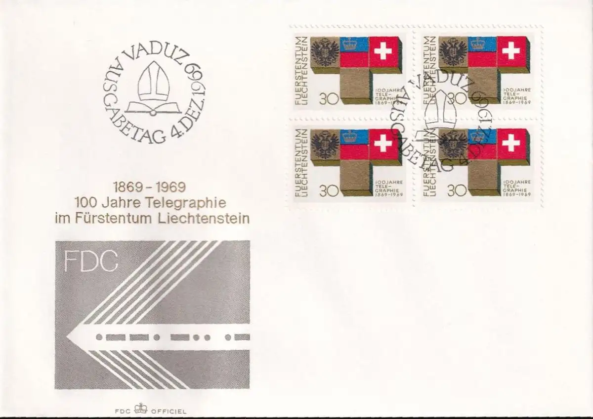 LIECHTENSTEIN 1969 Mi-Nr. 517 Viererblock FDC