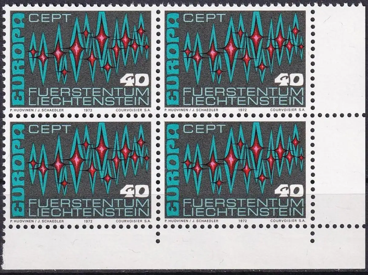LIECHTENSTEIN 1972 Mi-Nr. 564 Eckrand-Viererblock ** MNH