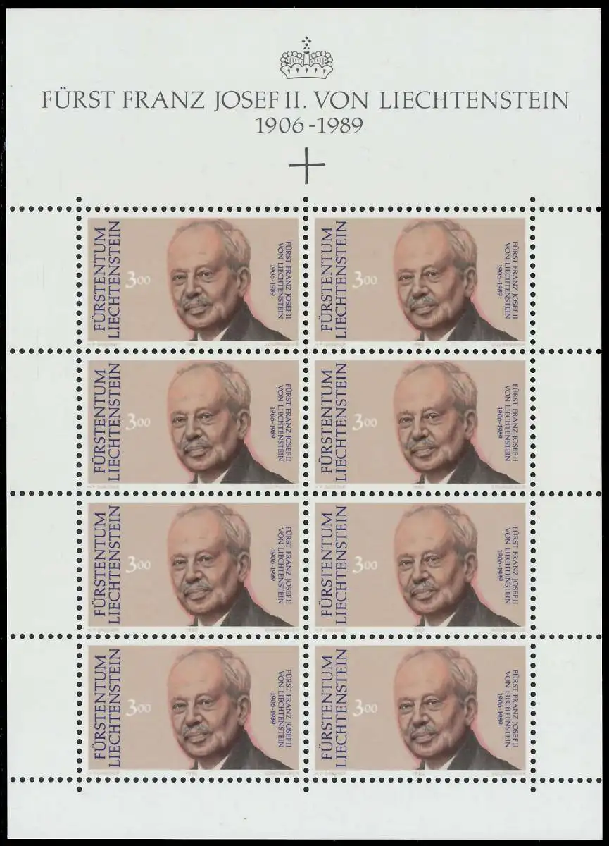 3 Fr. Wert Tod von Fürst Franz Josef II und Fürstin Gina von Liechtenstein im Kleinbogen
