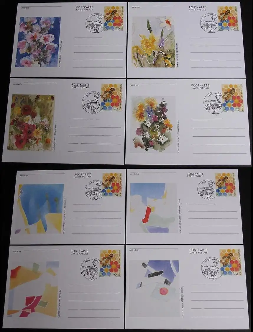 LIECHTENSTEIN 1996 Mi-Nr. P 104 1-8 Ganzsache gestempelt 8 Postkarten