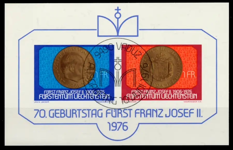 Blockausgabe 70. Geburtstag von Fürst Franz Josef II mit Ersttagssonderstempel (MichelNr.: 649, 650)