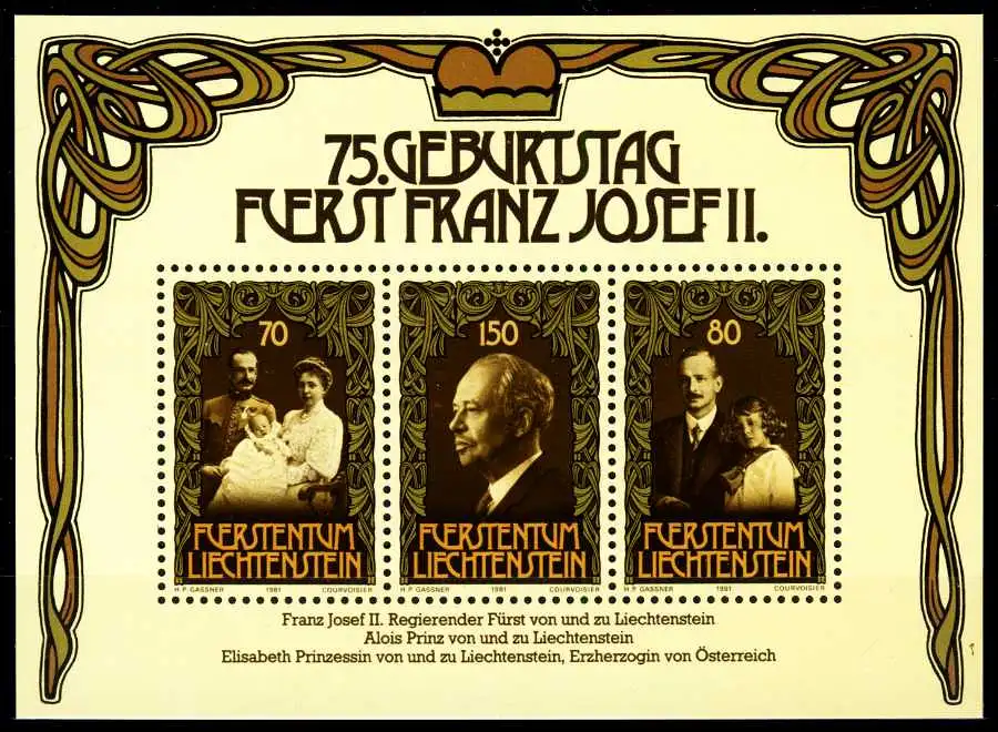 Blockausgabe 75. Geburtstag von Fürst Josef II (MichelNr.: 770, 771, 772)