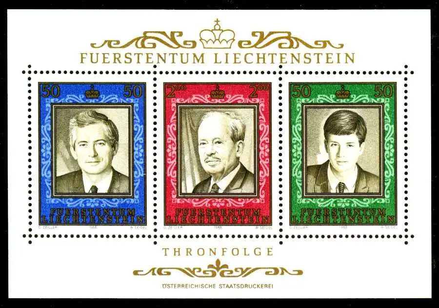 Blockausgabe 50 Jahre Regentschaft von Fürst Franz Josef II. (MichelNr.: 942, 943, 944)