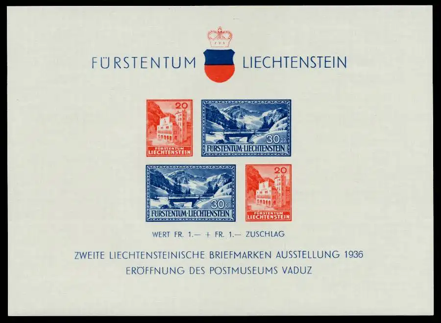 Blockausgabe, Eröffnung des Postmuseums und der 2. Briefmarkenausstellung in Vaduz (MichelNr.: 151)