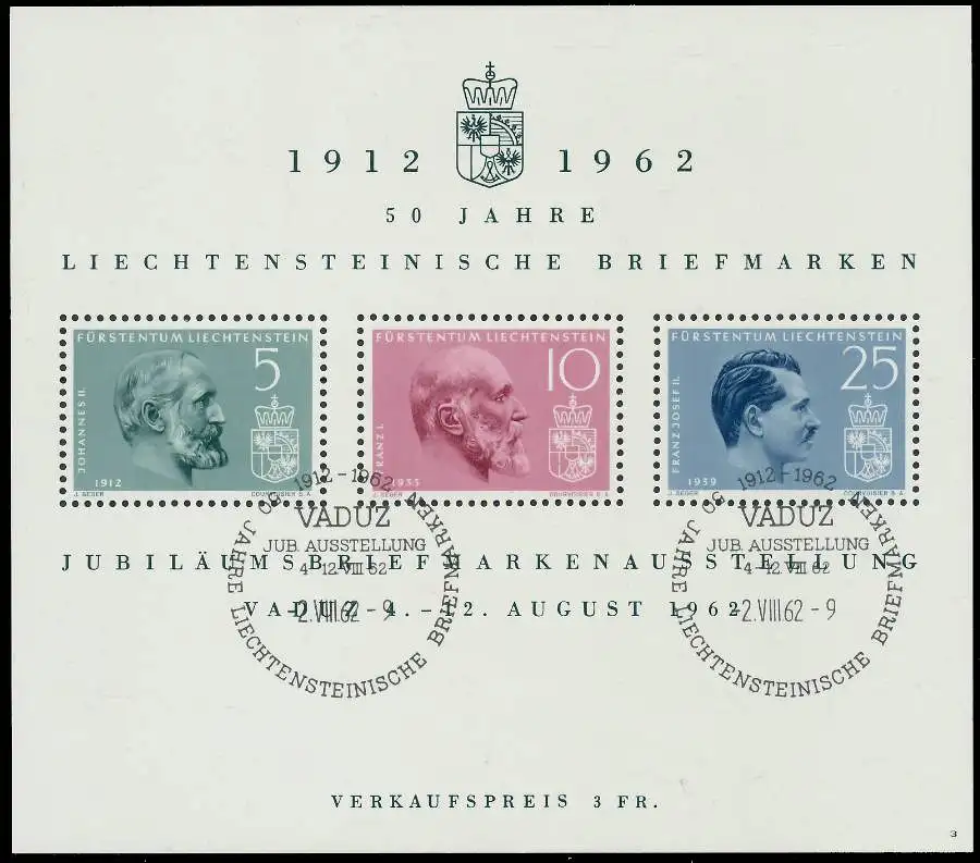 Blockausgabe Briefmarkenausstellung 50 Jahre Liechtensteinische Briefmarken (MichelNr.: 415)