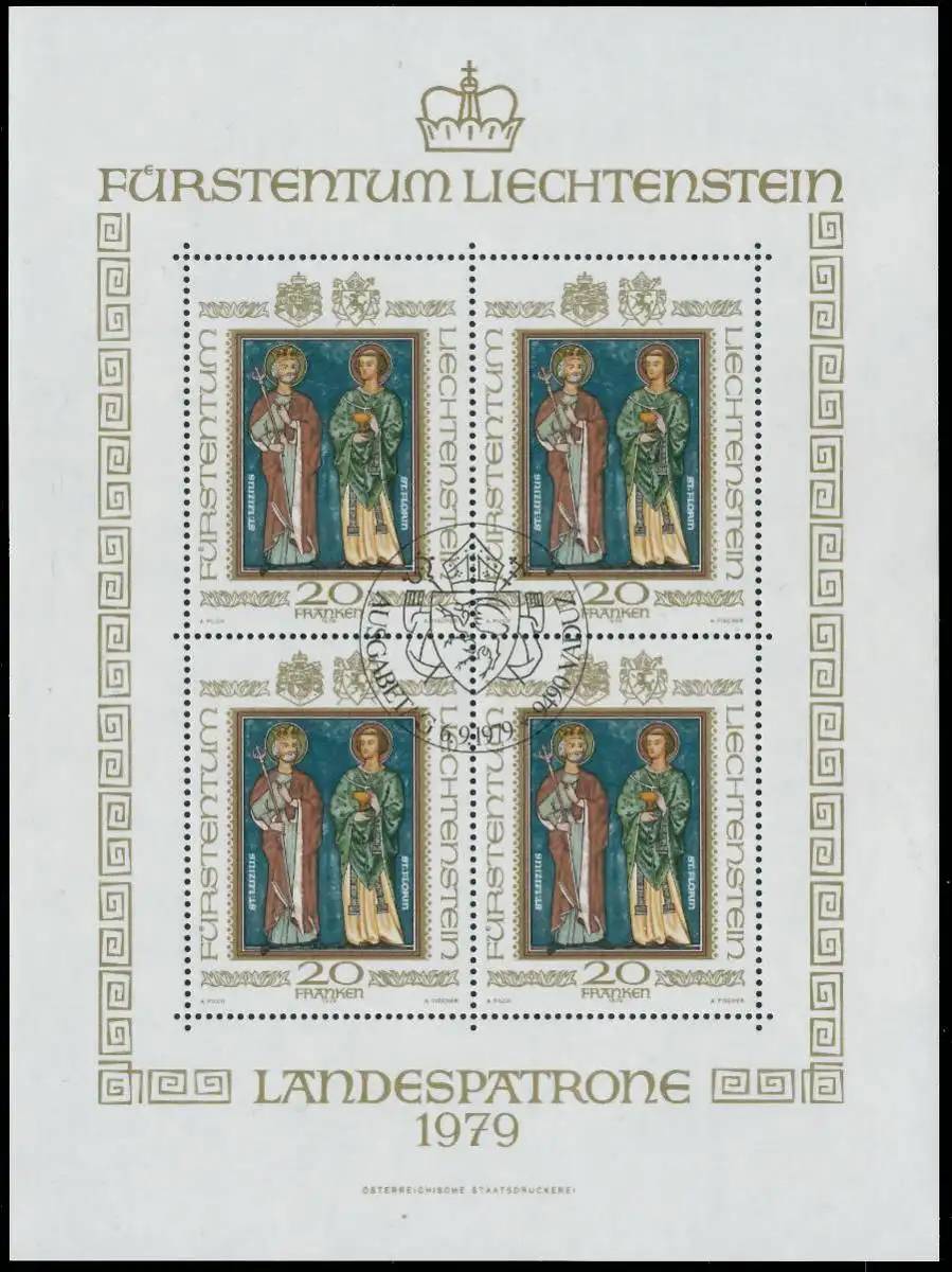 20 Fr. Wert Freimarkenausgabe Landespatrone im Kleinbogen