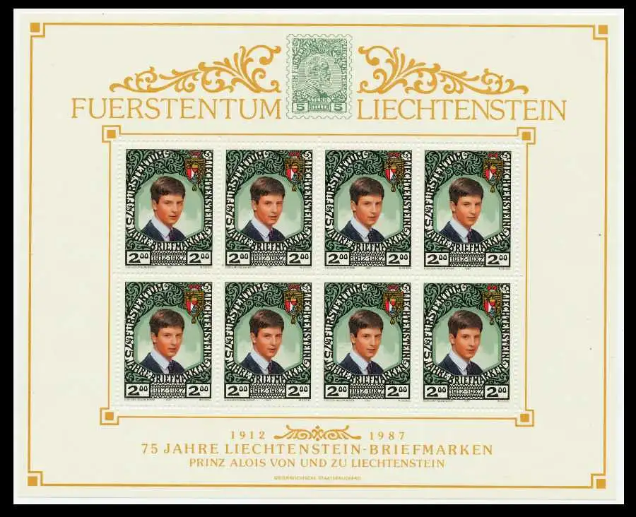 2 Fr. Wert 75 Jahre Briefmarken von Liechtenstein im Kleinbogen