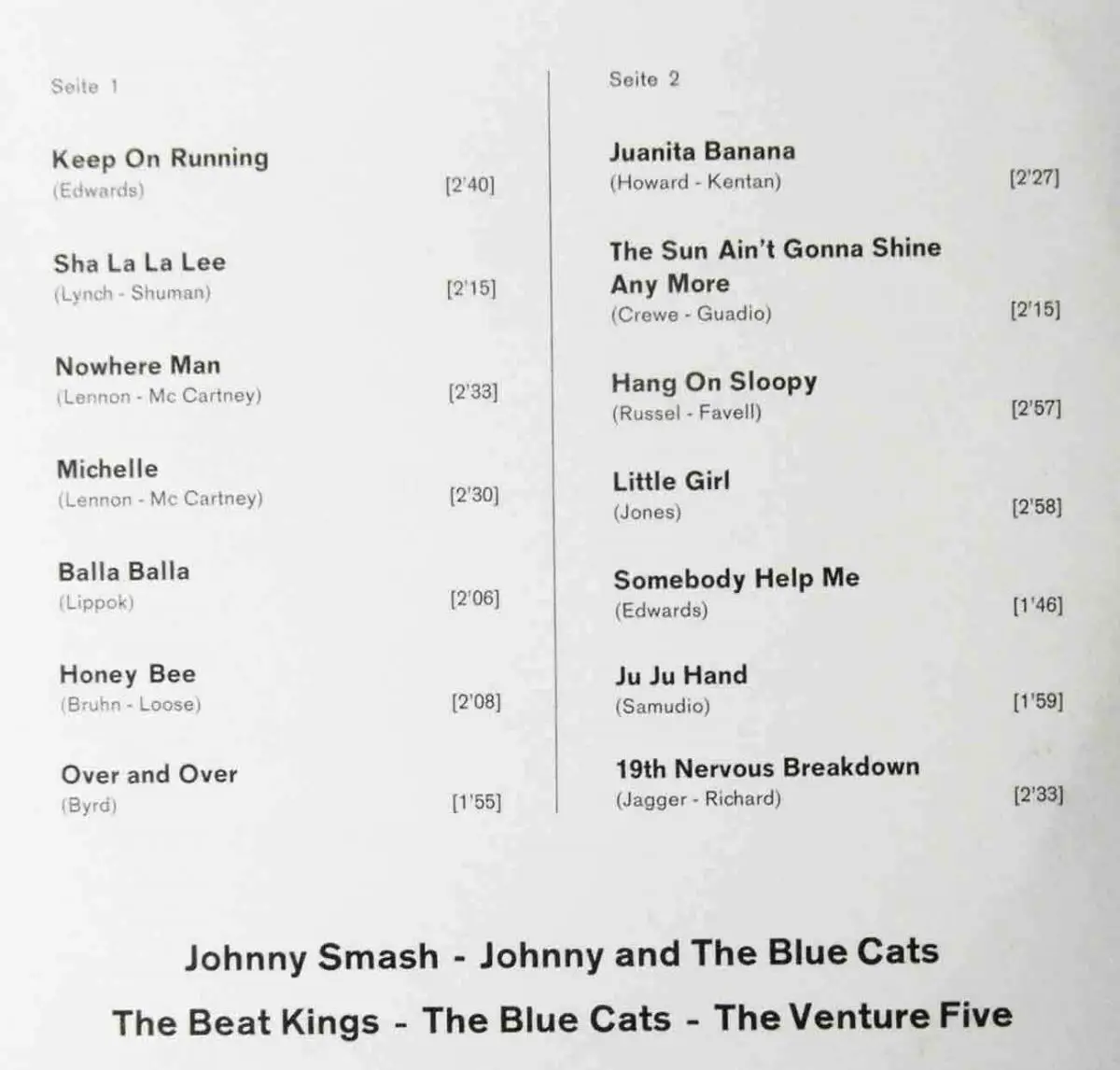 Produktion" (Covertext); feat Johnny Smash, Johnny & The Blue Cats,