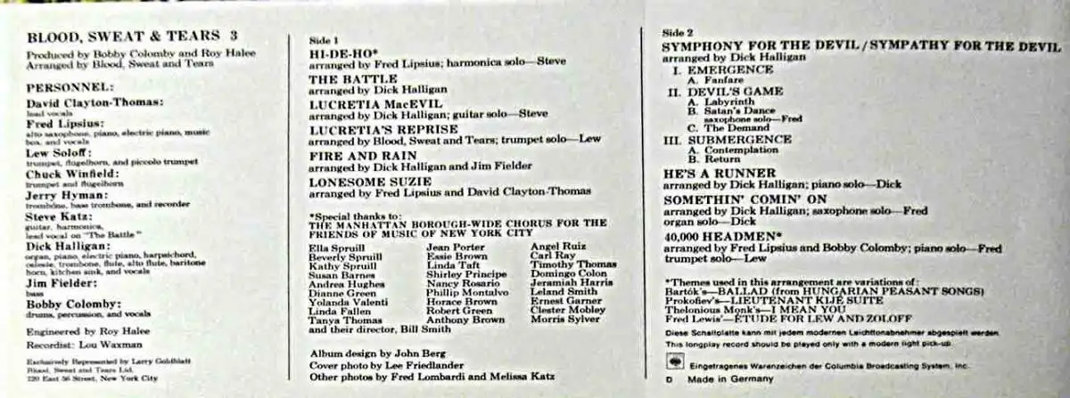 LP Blood Sweat & Tears 3 (CBS S 64 024) D 1970