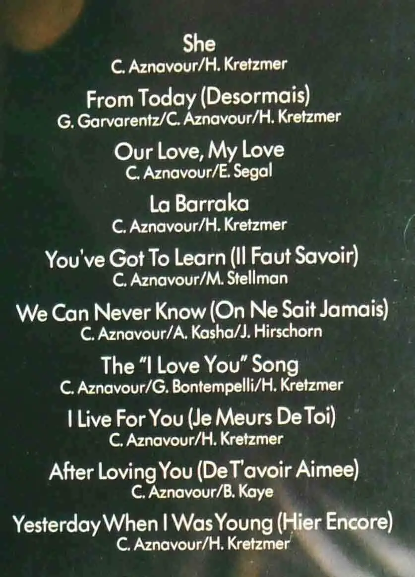 LP Charles Aznavour: A Tapestry Of Dreams (Barclay 90 003) UK 1974