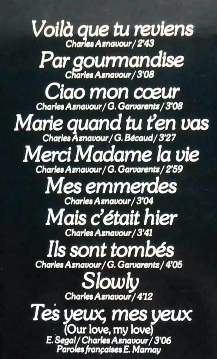 LP Charles Aznavour: Voila que tu reviens (Barclay 90.053) F 1976