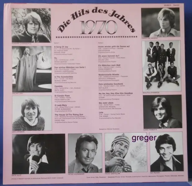 LP mit 16 Schlagern aus dem Jahr 1970 Plattengröße: LP (12 inch) Genre: Deutsche Musik Sub-Genre: Deutsche Schlager Geschwindigkeit: 33 U/min. Um die Titel zu lesen, klicken Sie bitte auf das dritte Bild. eventuelle Farbabweichungen, bedingt durch Blitzlicht, Lichteinfall und unterschiedliche Bildschirmkalibrierung