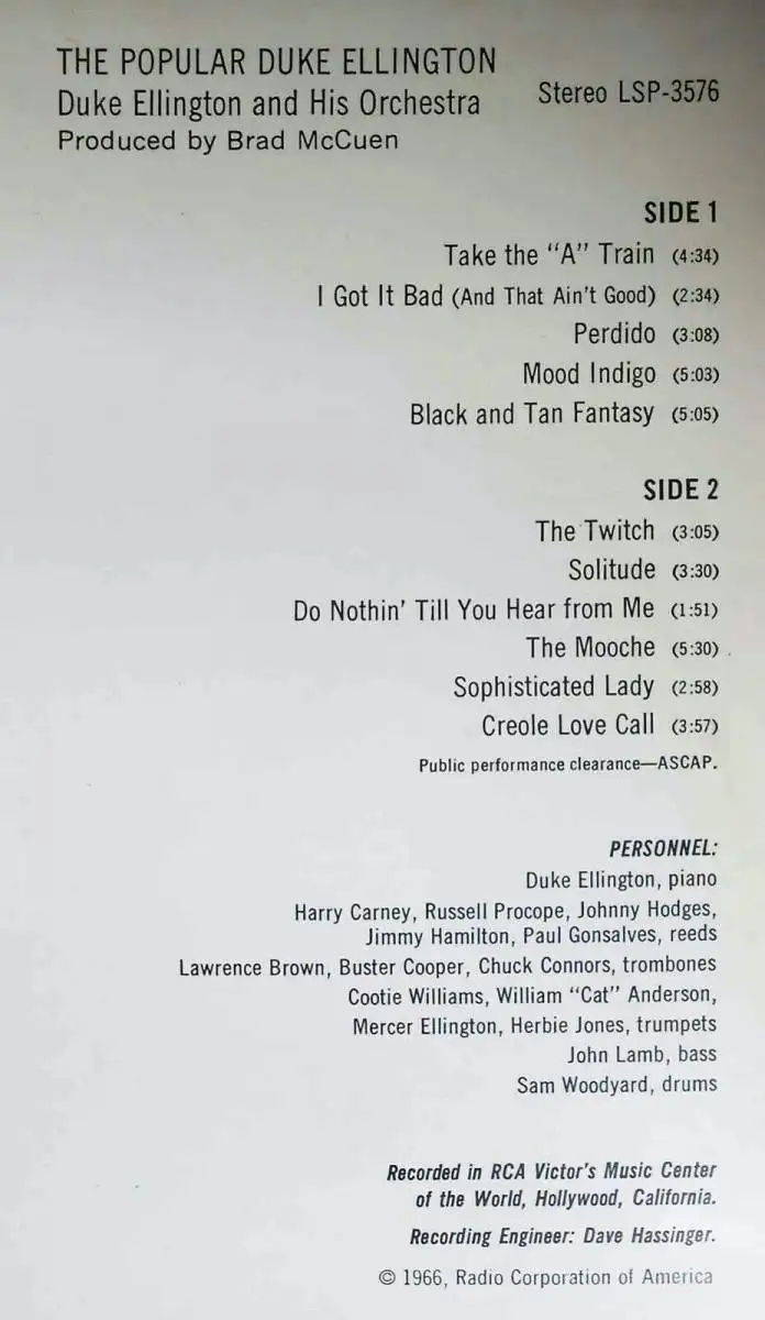 LP Duke Ellington: The Popular (RCA Victor LSP-3576) D 1966