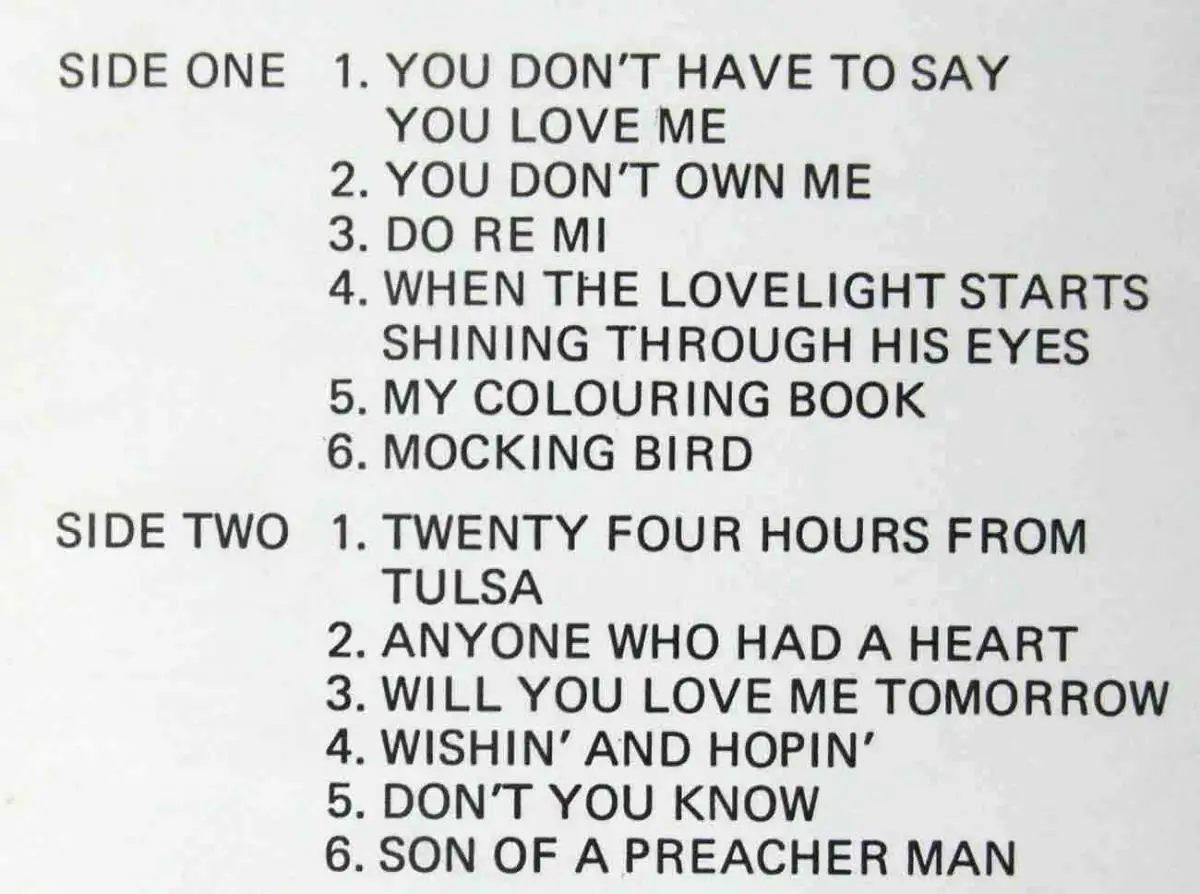 LP Dusty Springfield: You Don´t Have To say You Love Me (Contour CN 2016) UK