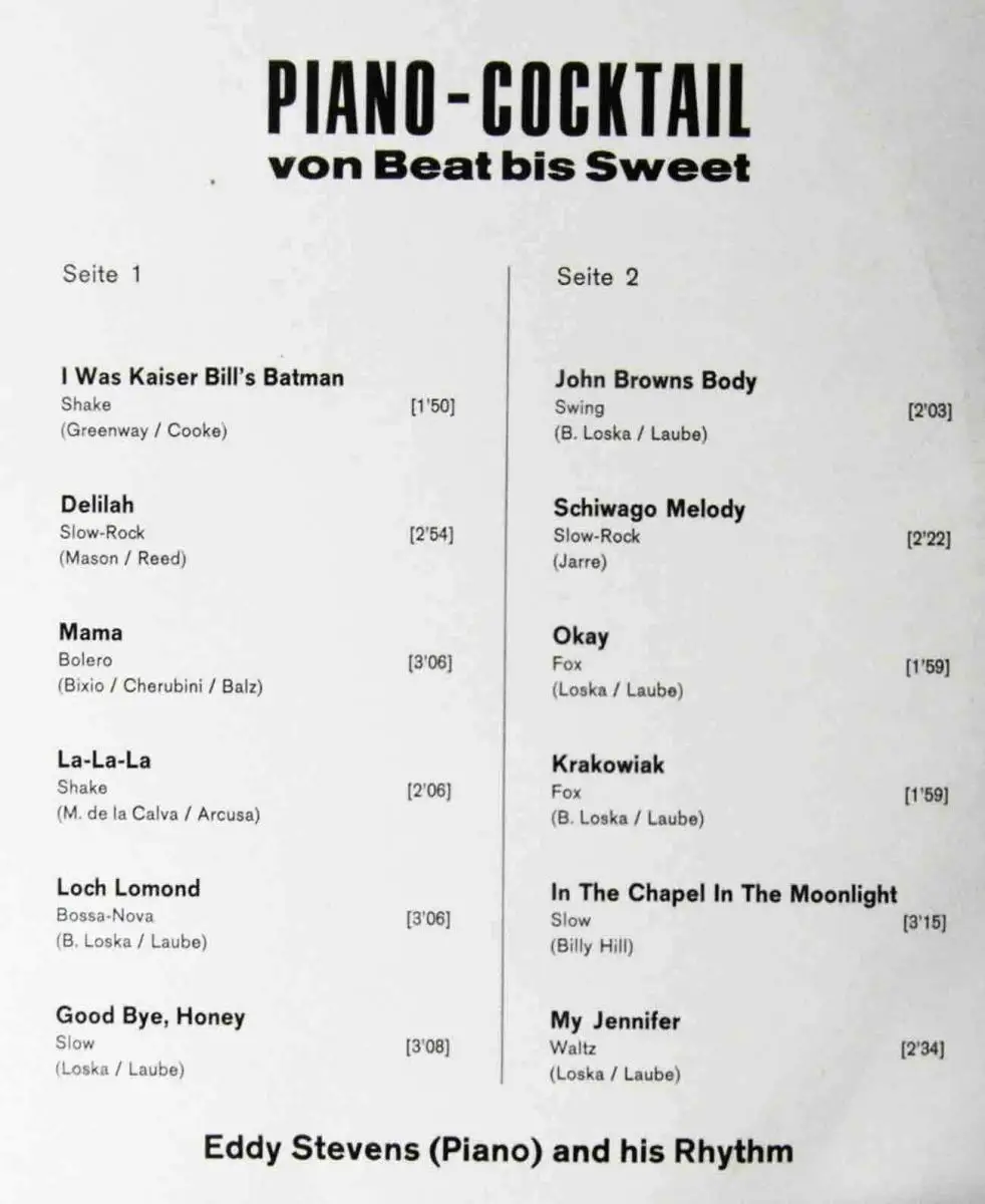 LP Eddy Stevens & His Rhythm: Piano Cocktail von Beat bis Sweet (Tempo 7063) D