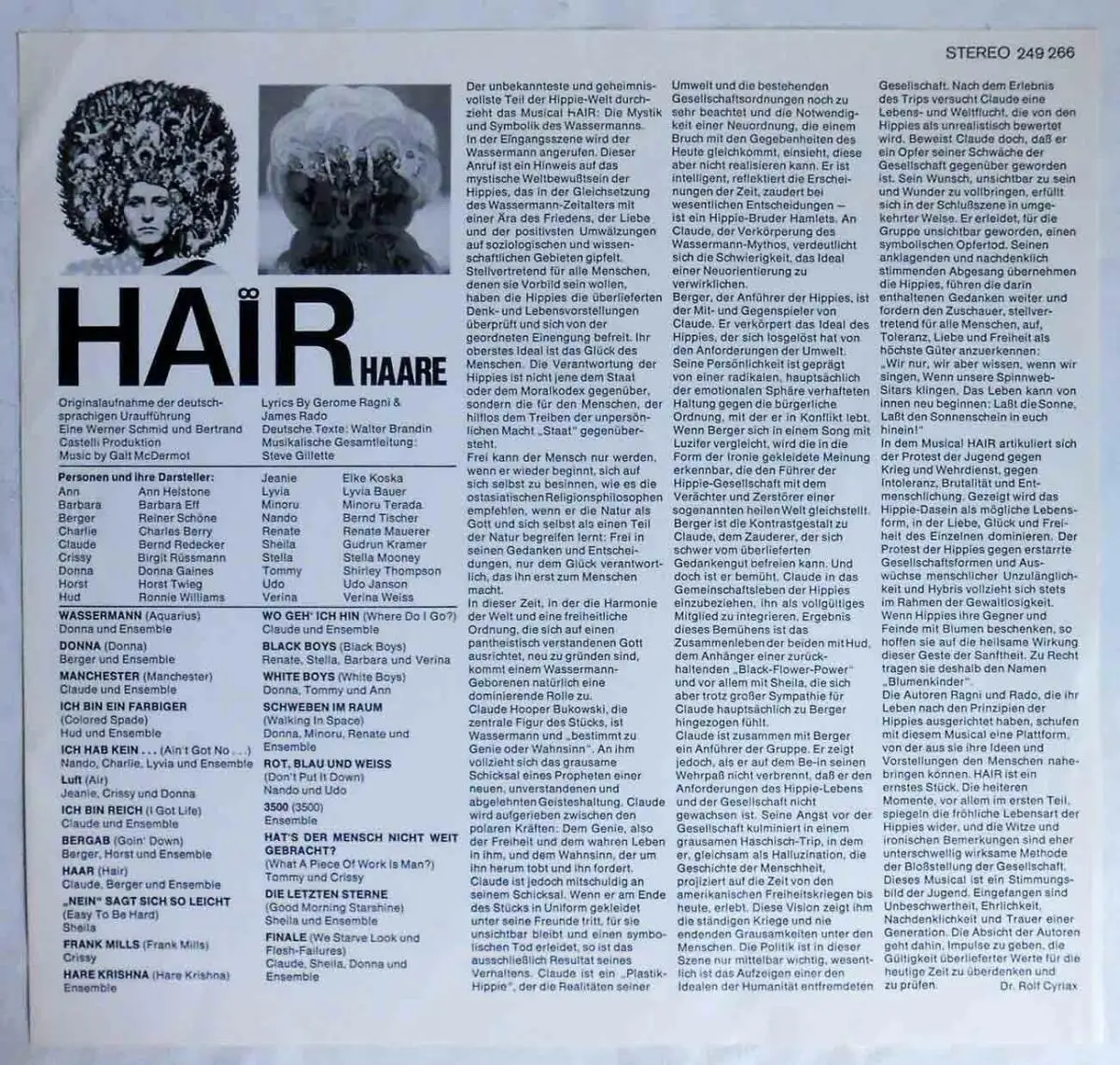 LP Haare - Deutschsprachige Uraufführung - (Polydor 249 266) Reiner Schöne