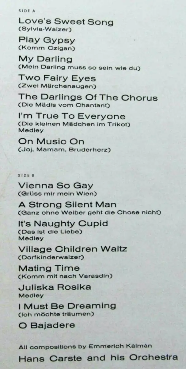LP Hans Carste: Die Emmerich Kalman Story (Polydor Stereo 237 568) D 1962