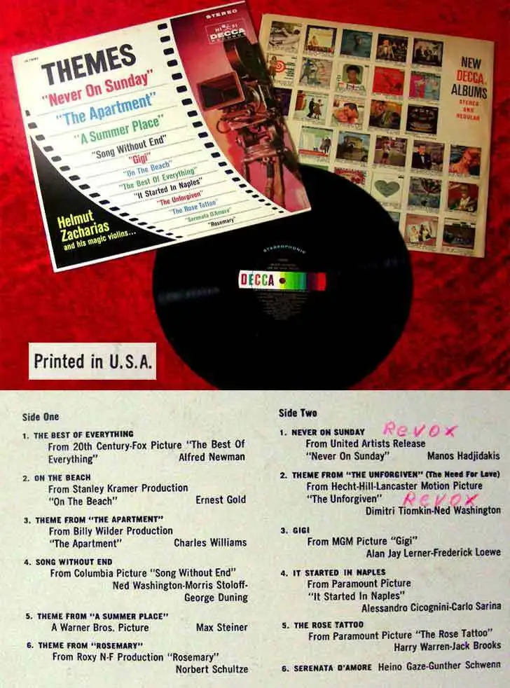 LP Helmut Zacharias: Themes (Decca DL 74083) US