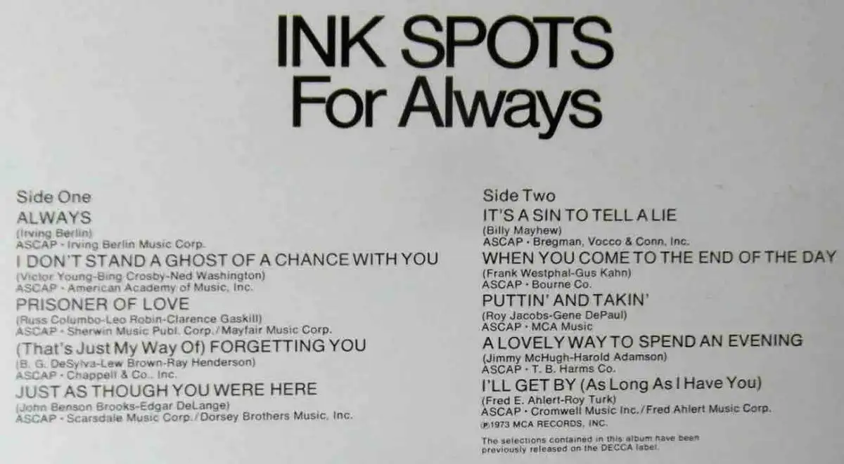 LP Ink Spots: For Always (MCA Coral CB-20017) US 1973