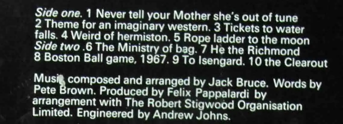 LP Jack Bruce: Songs For A Tailor (Polydor 184 320) D