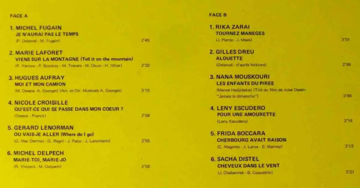 Originalalbum, Musidisc Records, frz. Pressung, Vol. 3, mit Nana Mouskouri, Michel Fugain, Marie Laforet, Nicole Croisille, Hugues Aufray, Gerard Lenorman, Michel Delpech, Sacha Distel, Rika Zarai, Gilles Dreu, Leny Escudero, Frida Boccara
