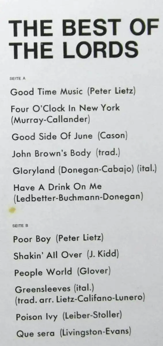 LP Lords: The Best Of The Lords (Columbia 1C 048-29 783) D