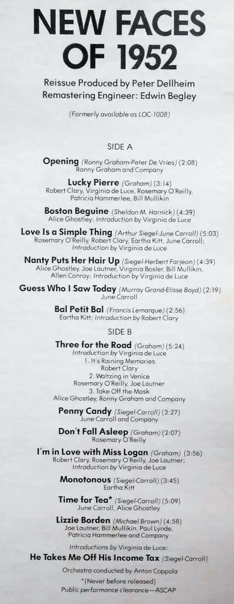 LP New Faces of 1952 (RCA CBM1-2206) US 1977 - Legendary BroadwayShow Series