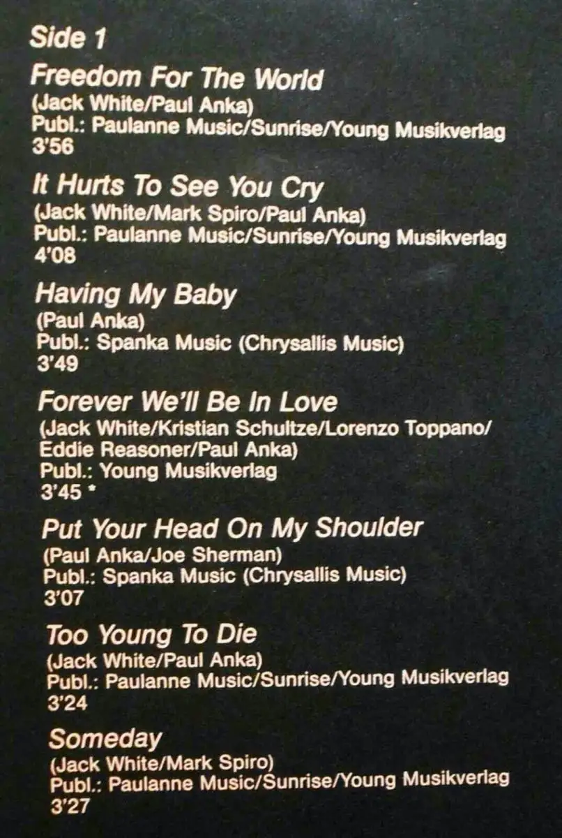 LP Paul Anka: Freedom for the World (Dino 1581) 1987