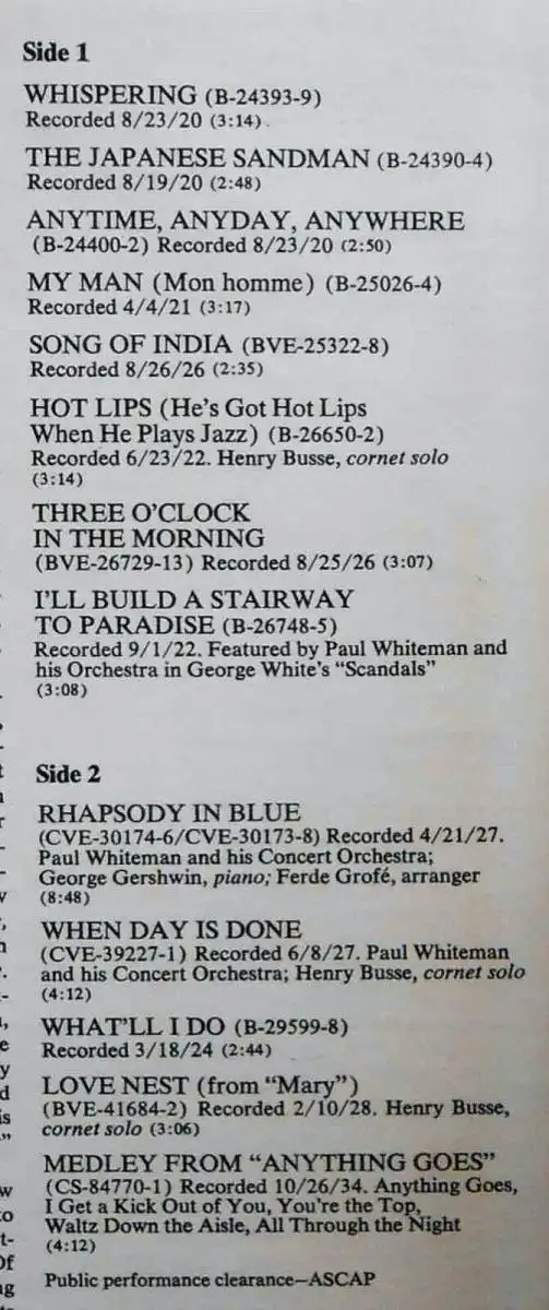 LP Paul Whiteman: Volume 1 (RCA LPV-555) US 1968