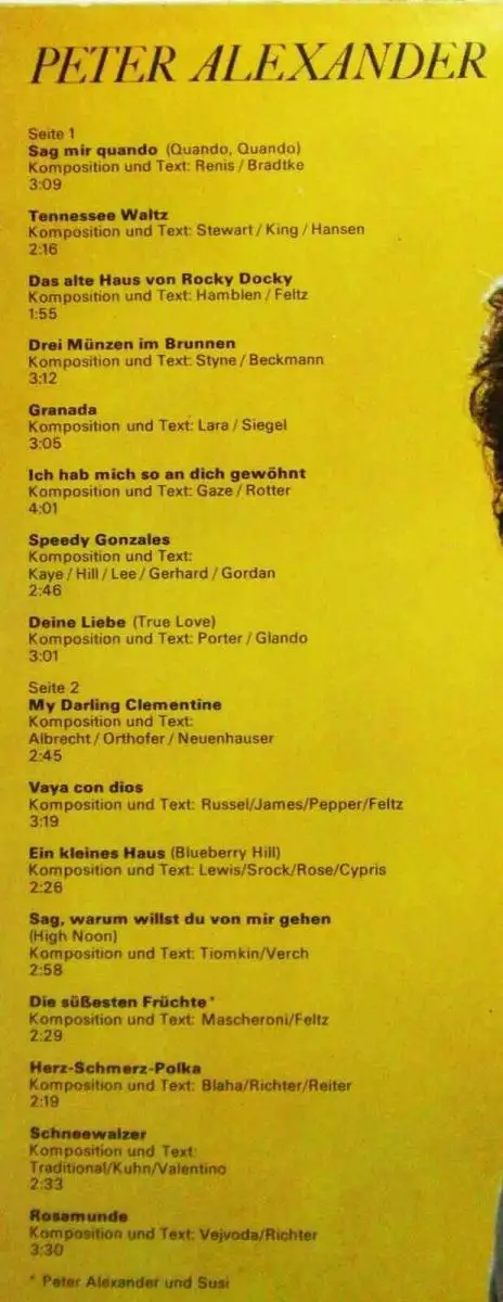 LP Peter Alexander: Meine Lieblings-Melodien (Amiga 856 205) DDR 1987