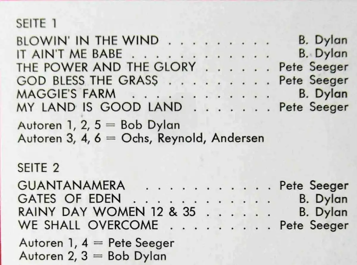 Seltenes Originalalbum, CBS H015, Deutscher Schallplattenclub, 1966, Protest- and Folksongs, Bob Dylan & Pete Seeger, dt. Pressung