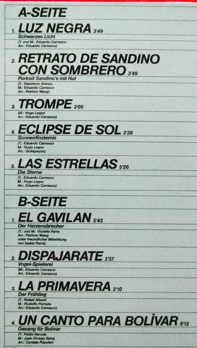 LP Quilapayun: Sandino (Pläne 88 339 G) D 1983