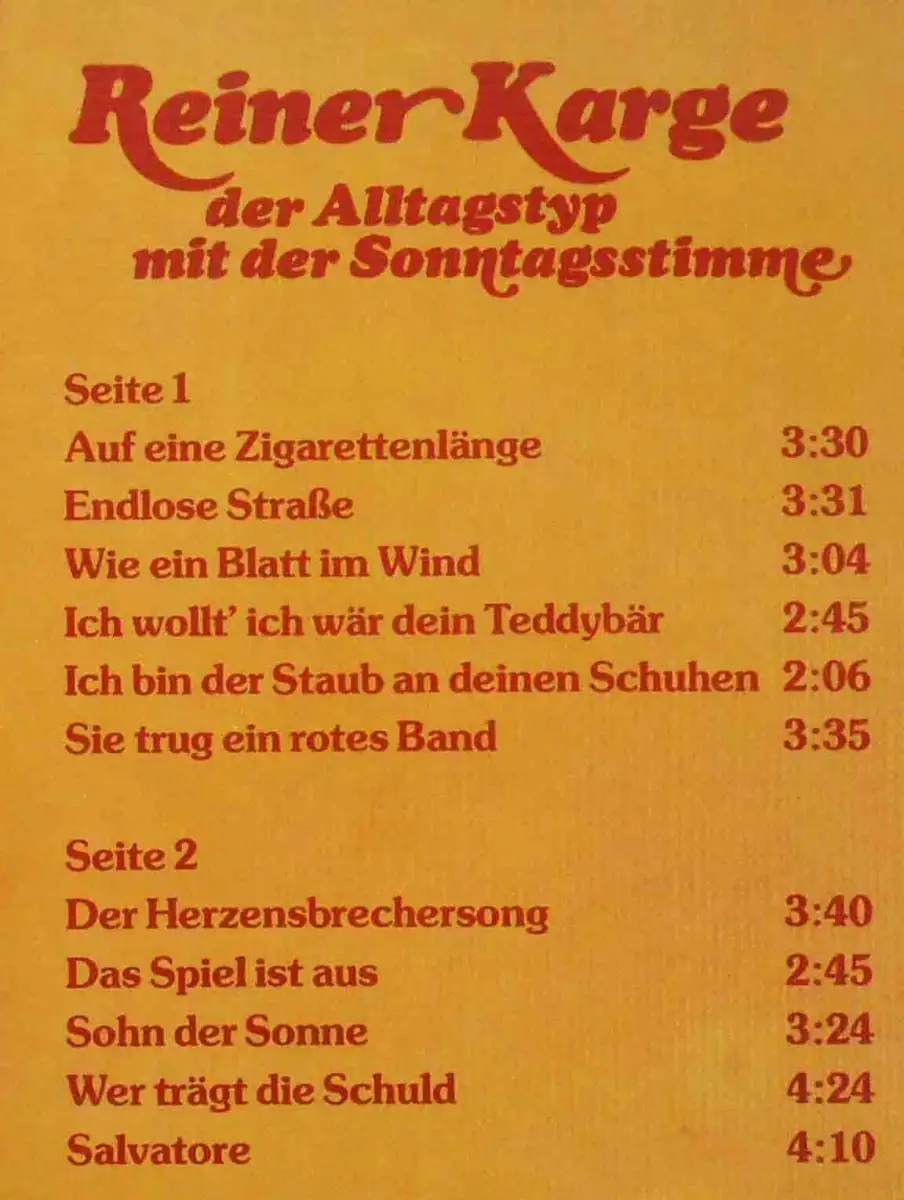 LP Reiner Karge: Auf eine Zigarettenlänge (Ahorn 623982 AP) D 1979