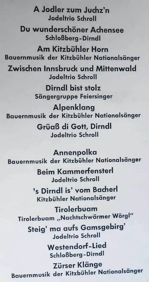 mit Jodeltrio Schroll, Schloßberg Dirndl, Bauernmusik der Kitzbühler Nationalsänger....