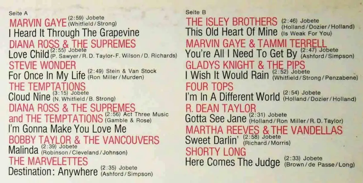 Originalalbum, Tamla Motown, dt. Pressung, 1969feat Marvin Gaye, Diana Ross & Supremes, Marvelettes, Temptations, Stevie Wonder, Bobby Taylor & Vancouvers, Isley Brothers, Four Tops, Martha Reeves & Vandellas, Shorty Long u.a.-Optische Bewertung (R/C): vg+/vg+