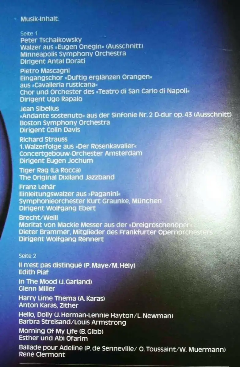 Seltenes Originalalbum, Philips Records, dt. Pressung, foc, mit eingeheftetem Booklet, mit Barbra Streisand, Louis Armstrong, Edith Piaf, Glenn Miller, Anton Karas, Esther & Abi Ofarim, Rene Clermont, Original Dixieland Jazzband, Antal Dorati und weitere Klassik-Interpreten