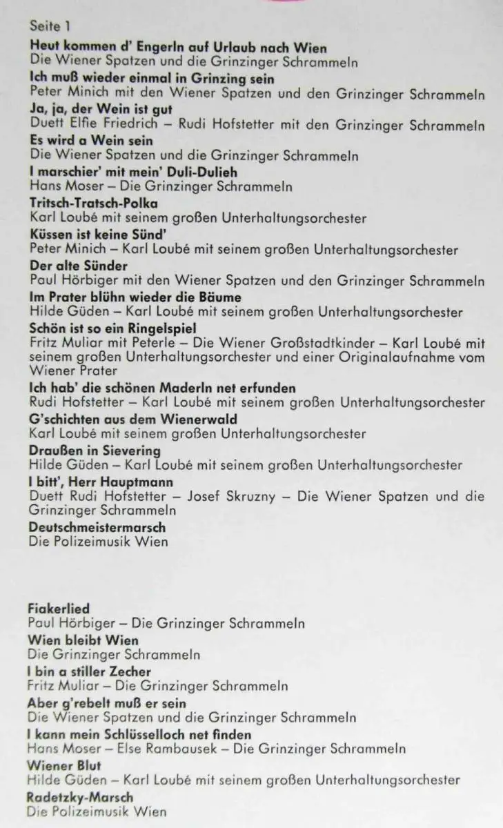 mit Peter Minich, Elfie Friedrich, Rudi Hofstetter, Grinzinger Schrammeln, Hans Moser, Karl Loubé, Paul Hörbiger, Hilde Güden, Fritz Muliar, polizeimusik Wien