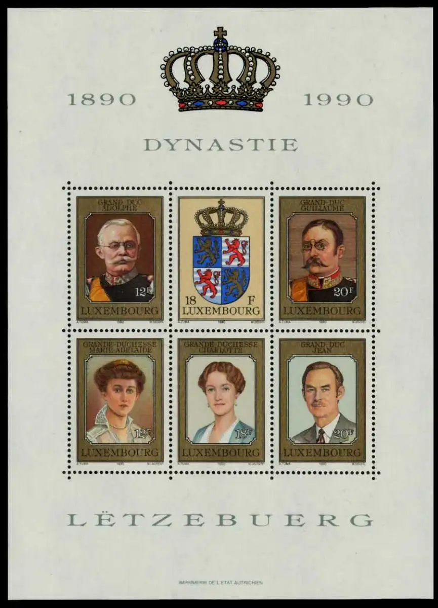 Blockausgabe 100 Jahre Dynastie Letzebuerg, Wappen, Herrscherfamilie