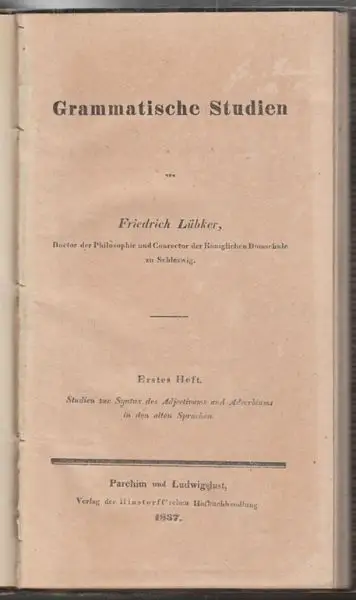 Bemerkungen: MNE I, 439 - Enthält: Erstes Heft. Studien zur Syntax des Adjektivums und Adverbiums in den alten Sprachen. - Friedrich Heinrich Christian Lübker war der Begründer des "Reallexikons des classischen Alterthums".