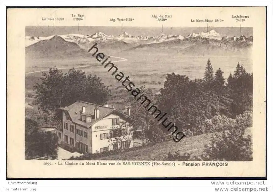 La Chaine de Mont Blanc vue de Bas-Mornex - Pension Francois - Edition L. Fauraz Annemasse (G22273) gel. 1928