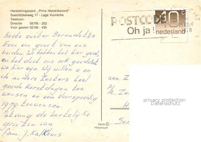 Lage_Vuursche Herstellingsoord Prins Hendriksoord Lage Vuursche postalisch gelaufen 1971 Erhaltung siehe scans [WerneD78] WernPID7