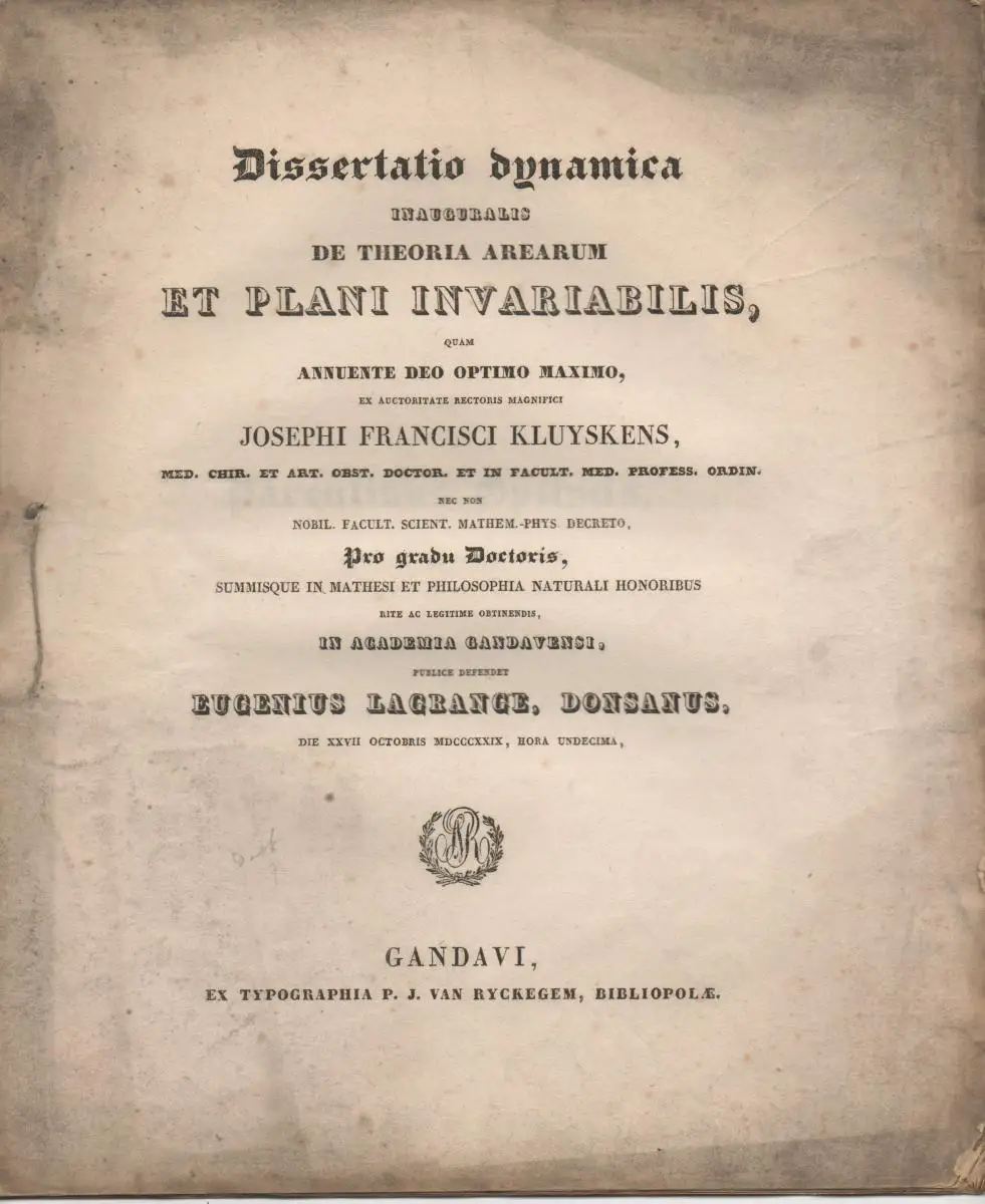 Lagrange, Eugène: De theoria arearum et plani invariabilis. Dissertation.