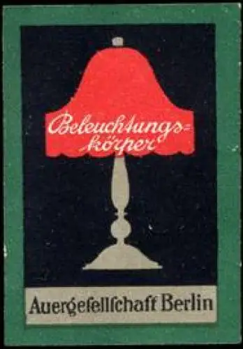 Beleuchtungskörper, Auergesellschaft, Berlin, Licht, Beleuchtung, Größe/Zustand: 5x4 , guter Zustand, Original alte Reklamemarke die seinerzeit für die Werbung benutzt wurde