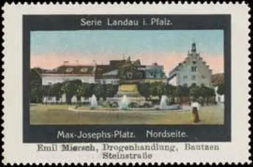 Max-Josephs-Platz, Nordseite, Serie: Landau/Pfalz, Größe/Zustand: 4x7 , guter Zustand, Original alte Reklamemarke die seinerzeit für die Werbung benutzt wurde